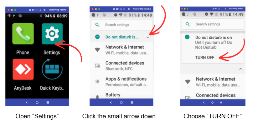 "Do Not Disturb" feature most of the times activated by accident. When this feature activated, it might cause noisy feedback issue while Voiceping is in use.